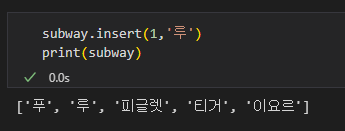insert(인덱스, 삽입할 값)