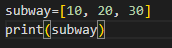 리스트명 = [값1, 값2, ...]
